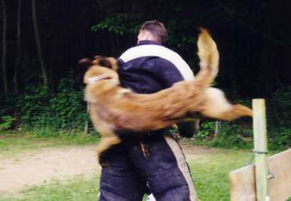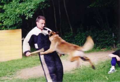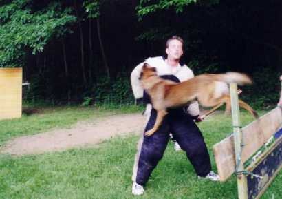 C'est le chien de Gilles. Il est né en 1996, ring III, aujourd'hui à la retraite. Du même age que Marcus , ils ont été entraînés ensembles. Si j'avais un berger- belge, je voudrais qu'il ressemble à Malouk, chien super-sociable, grand sportif, sympa quoi.. Gilles était l'homme d'attaque de Marcus. J'ai appris beaucoup avec lui. Encore merci Gilles.